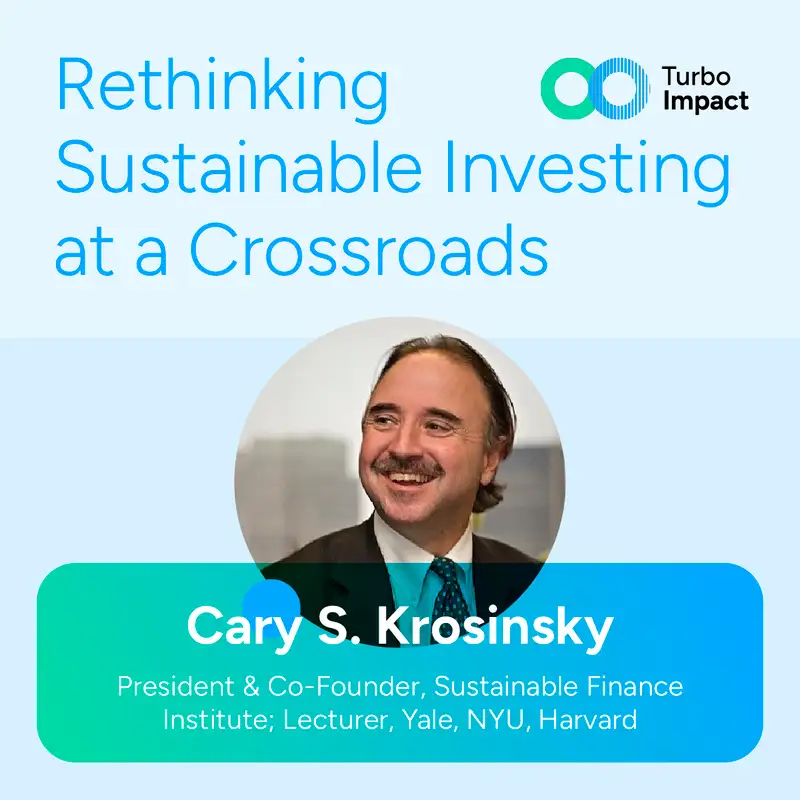 play Play pause Pause S1 E1 May 14, 2025 Cary Krosinsky: Rethinking Sustainable Investing at a Crossroads In the inaugural episode of Turbo Impact, Cary Krosinsky—educator, advisor, and co-founder of the Sustainable Finance Institute—joins host Kenny Chen to explore how su...